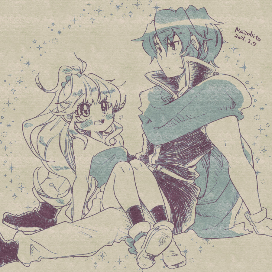 イラストフィギュアをゲットしたので、試しに写真を撮ってそれをベースに描いてみました。テイルと少年エトーです。少年エトーは小柄でかわいい系なんよ…。少年エトーは小鳥と旅人 総集編で見られますぞ!