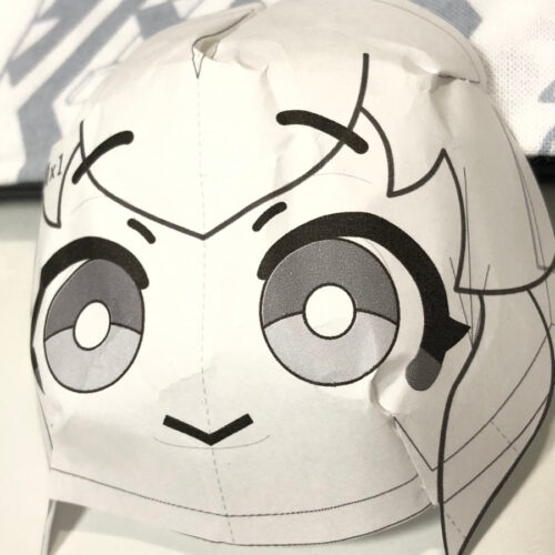 私の方で作るのはお顔の刺繍案(顔は刺繍にしました)と、髪のパーツです。購入したPDFの型紙を下敷きに、顔と前髪の刺繍図案を作成。テイルの髪パーツも同じように作っていきます。