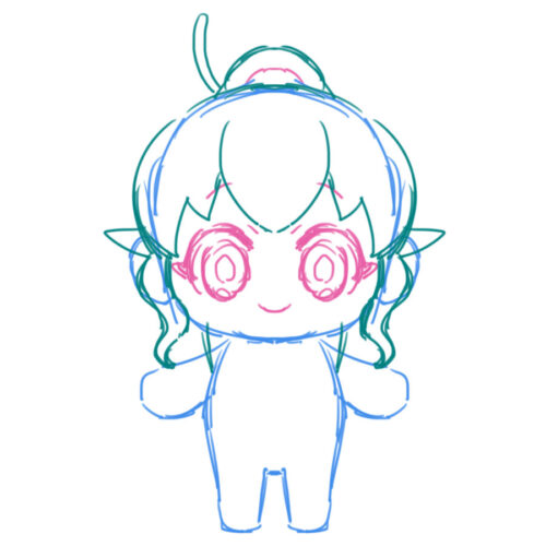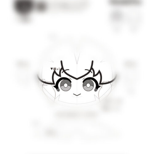 推しぬいを持っていないので、どういったものかは詳しくなく…。とりあえず自分が欲しいなと思うぬいぐるみのラフを描いてみました。ぬいぐるみの顔は基本的にシンメトリーですし、対象定規を使うと便利ですね。