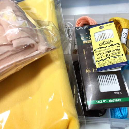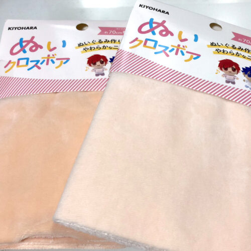 ぬいぐるみ向けの生地は通販(ぬいぐるみの生地やさん)で購入。ぬいぐるみ制作におすすめの道具も紹介されています。生地の色味を実際に見たい気持ちもありますが、近くの手芸屋さんでは取り扱ってなかったんですよね~。刺繍糸は実物を見て買いました。