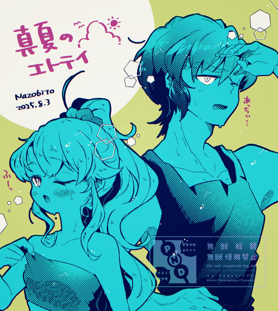 最近の暑さはすごいですね!そんなわけで暑さにまいるエトテイを描きたくなってしまい…。二人とも毛量が多めなのでかなり鬱陶しいのだろうなっていう。あとエトーの腕にうっすら血管描いて満足。暑くて体温上がると血管浮き出やすい…よな!?浮き出た血管に雄み(?)を感じて、そんなエトーの隣にテイルちゃんがいるっていうのがいいなと。体格差が好きだからね…。その身体でテイルを守ってくれや…。