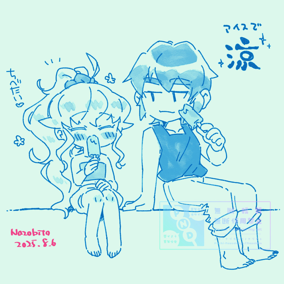 暑いままなのもかわいそうなのでアイスで涼をとってもらいます。女の子が喜んで美味しそうに食べている様子を見守る青年というシチュエーションが大好きなので、ついついエトーの視線をテイルにやりがち…。いや、いつもテイルへ見守り目線やりがちかもなのですが…!
