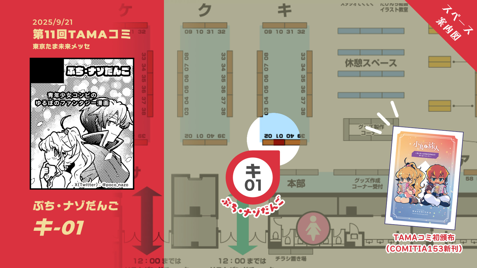 2025年9月21日開催予定のTAMAコミ11に申し込みしました。TAMAコミ11の情報は随時こちらの記事で更新します。2週間前にCOMITIA153へ参加したのでそちらの新刊などを持ち込みいたします。ペーパーなど紙物を用意できたらいいなとは思いますが果たして…!