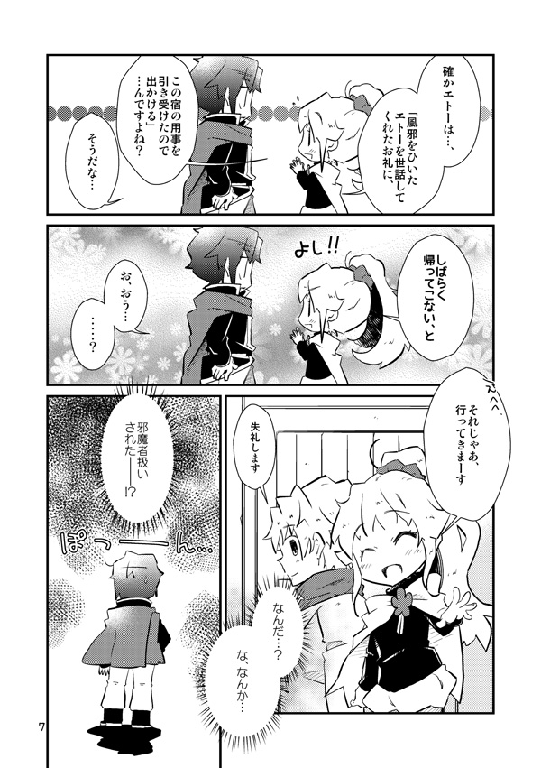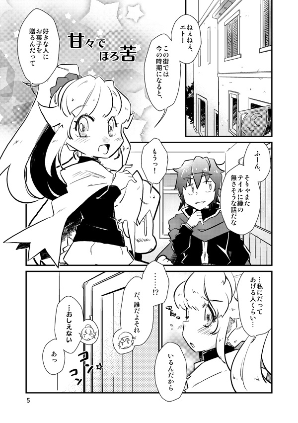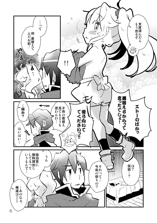 話全体としてはコミカルでかわいらしくて好きです。エトーがテイルの着替え中に入室するという、いわゆる若干のラッキースケベ要素があります。今のエトーだったらね…どうかな…。ただ、一緒に旅して過ごしているのだから、多少なりともこういったハプニングはあるんだろうなあとは考えます。こういうネタは慎重になりますが、そこら辺のさじ加減を考えるのも創作の楽しみですね。