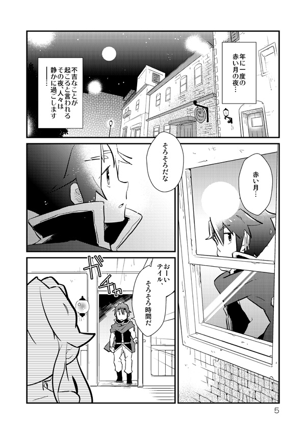 赤い月の夜に祭りで賑わう町にやって来た二人のお話。ピクシーという不思議な生き物に翻弄されてしまう…?