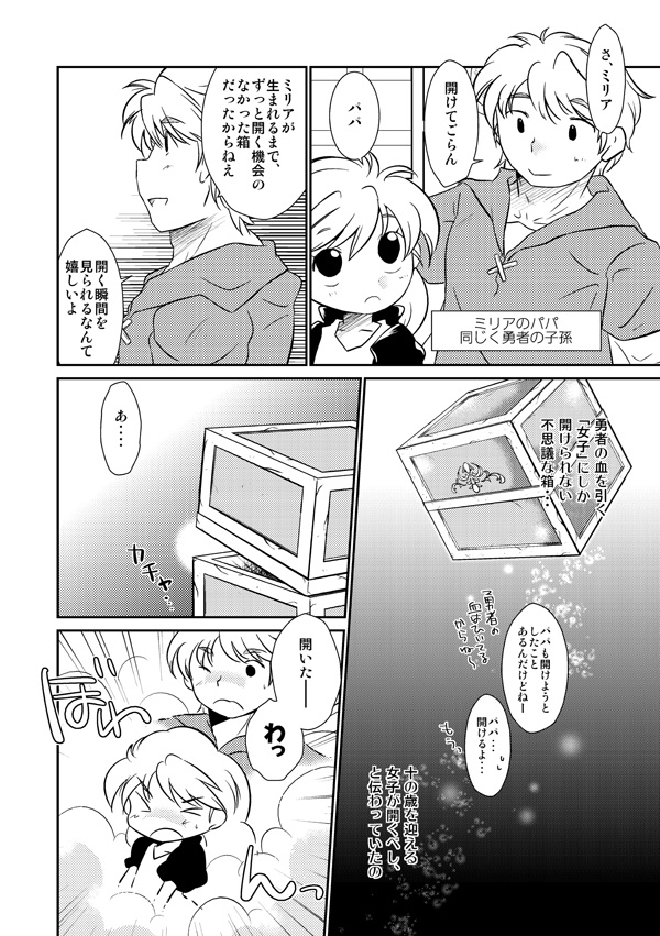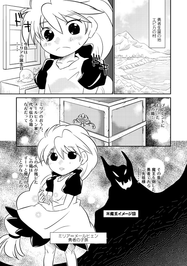 勇者の子孫ミリアと魔王の息子まーくんのお話。120年前、人間と魔族の間で戦争が起こり、魔族の王〈魔王〉が倒された。そして現代、勇者の子孫ミリアの元に魔王の息子まーくんが蘇る。